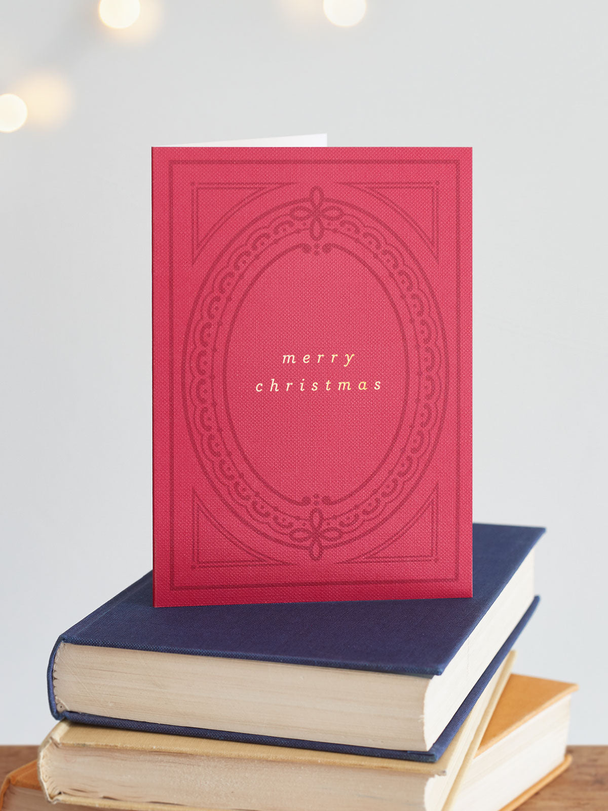 Classic and festive, this Book Club card channels the magic of vintage publishing with its bold foil lettering and tactile buckram card stock. Designed to evoke the joy of discovering a long-lost story, it’s a timeless choice for sharing Merry Christmas wishes.