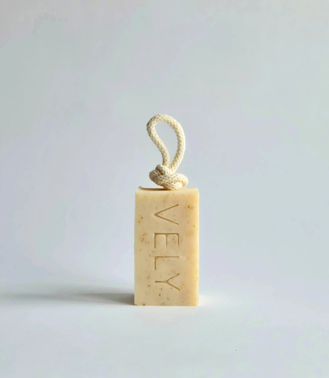 Natural Handmade "Classic Twist" Soap on a Rope with Oatmeal. This gentle, nourishing soap is made with a blend of plant-based oils and butters, scented with the timeless pairing of Lavender and Rose Geranium essential oils. Finely ground organic oatmeal adds a creamy lather and mild exfoliating effect.