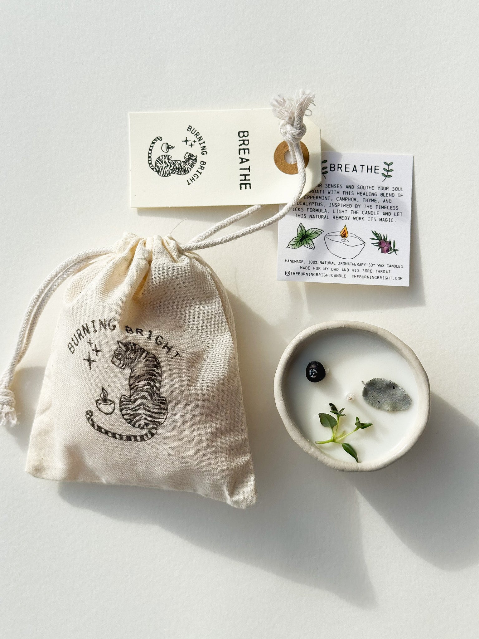 Awaken your senses and soothe your soul (and throat) with this healing blend of peppermint, camphor, thyme and eucalyptus, inspired by the timeless Vicks formula, light the candle and let this natural remedy work its magic.