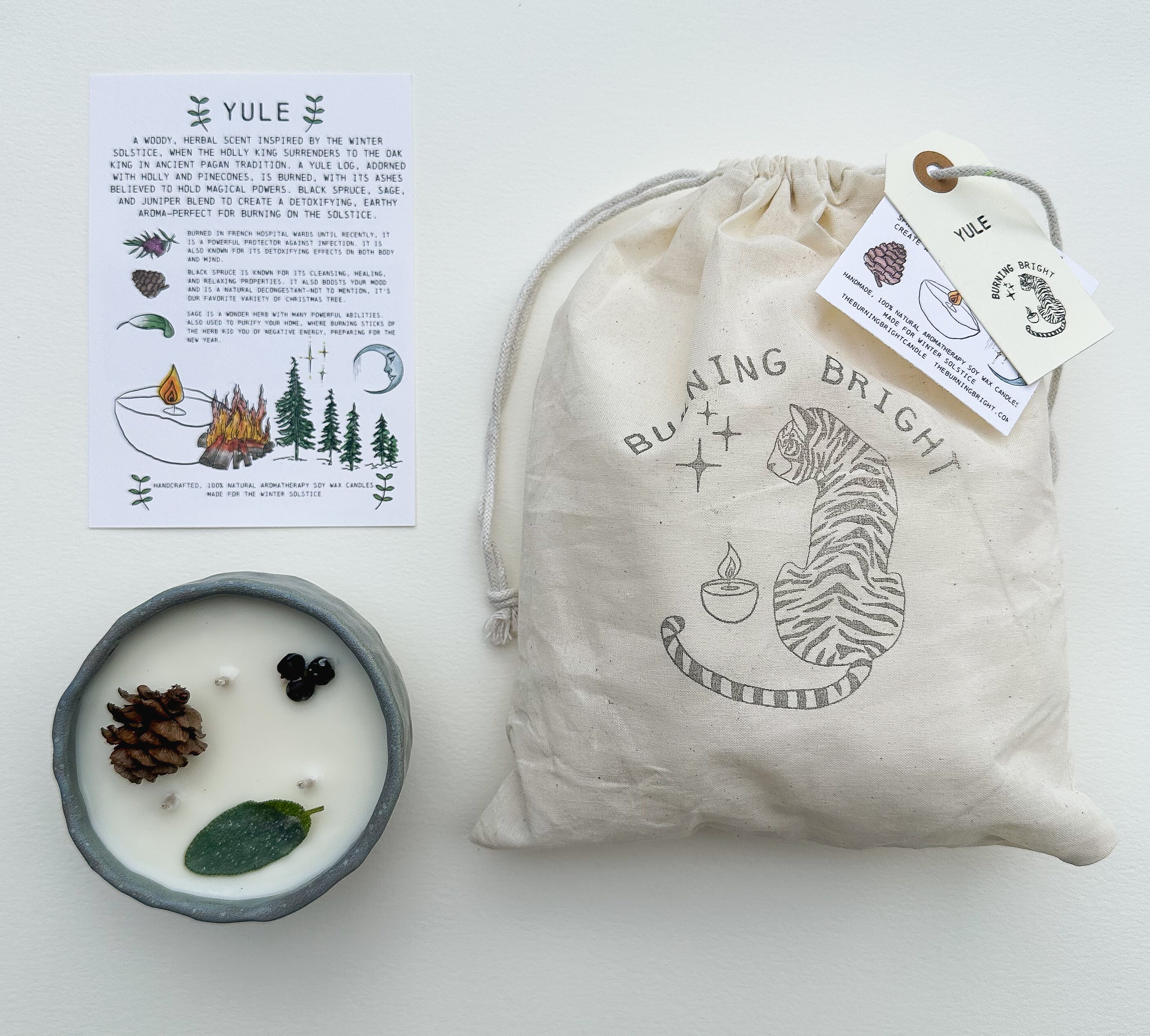 Each candle comes in a cotton bag, with an illustrated desicriptioncard, making it the perfect gift.