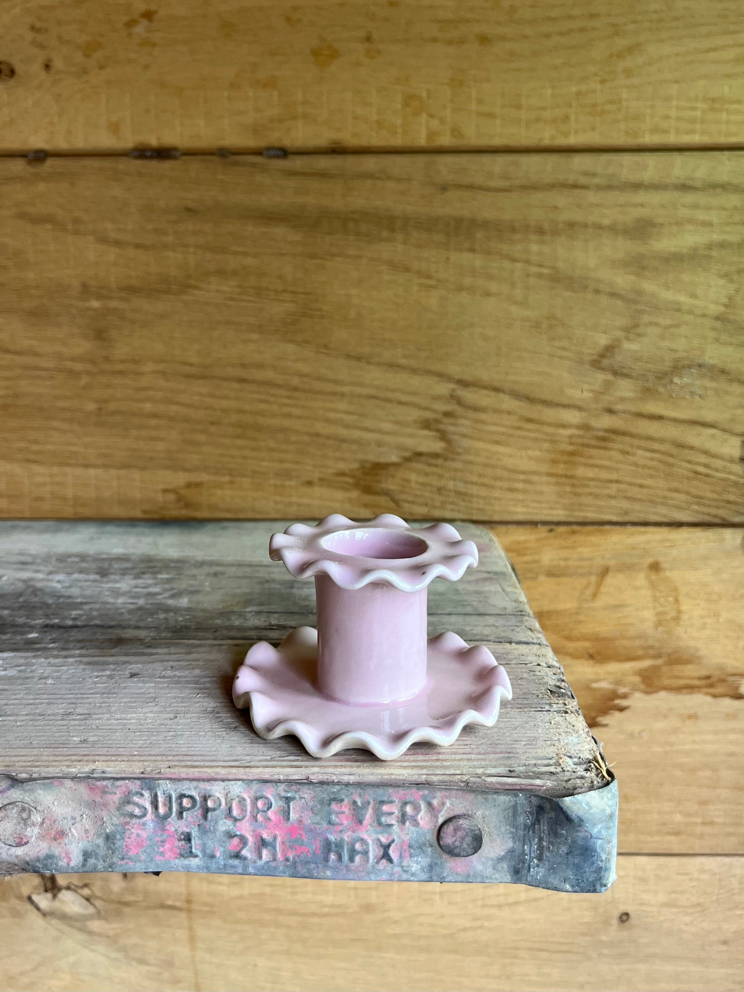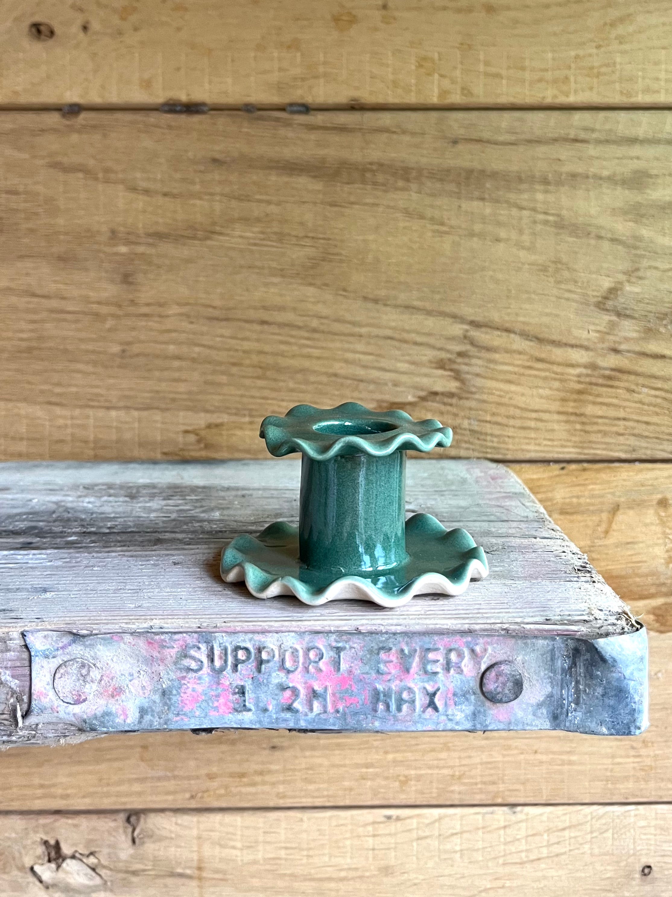 Handmade ceramic single frilled candlestick. Pink, yellow, lavender, burgundy, tomato, blue