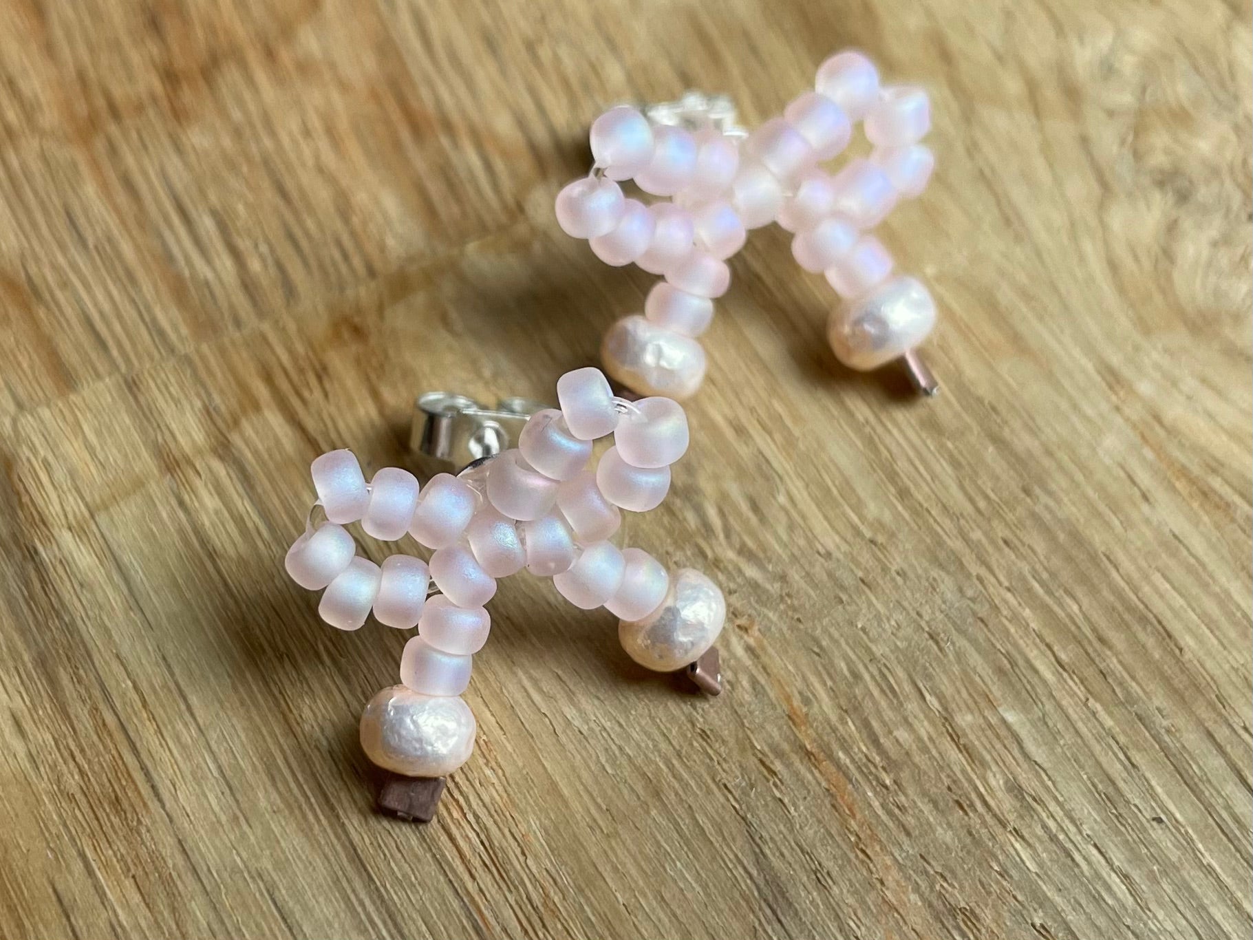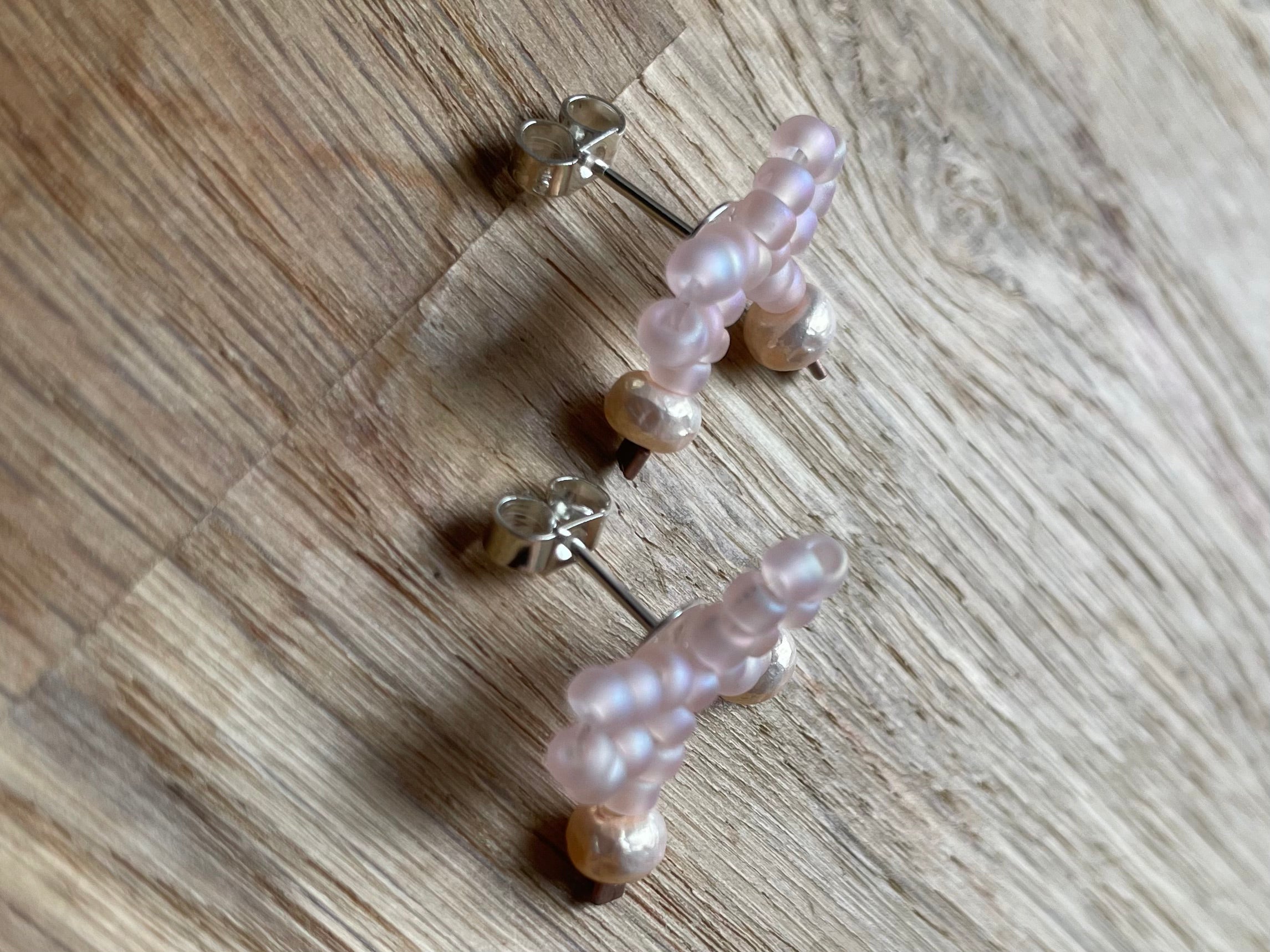Tea rose Miyuki seed beads. Made with hypoallergenic 925 sterling silver studs and 925 sterling silver butterfly scroll.