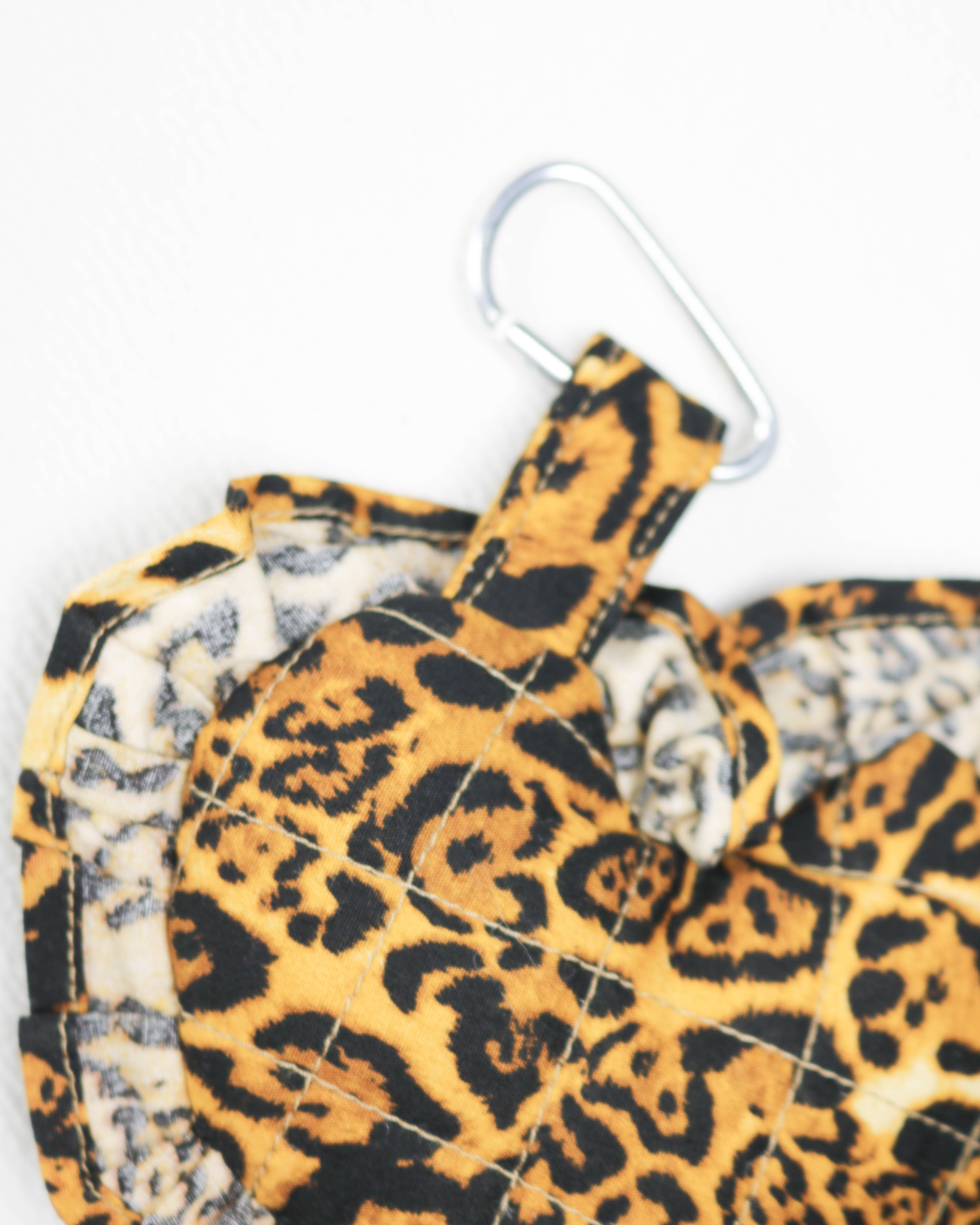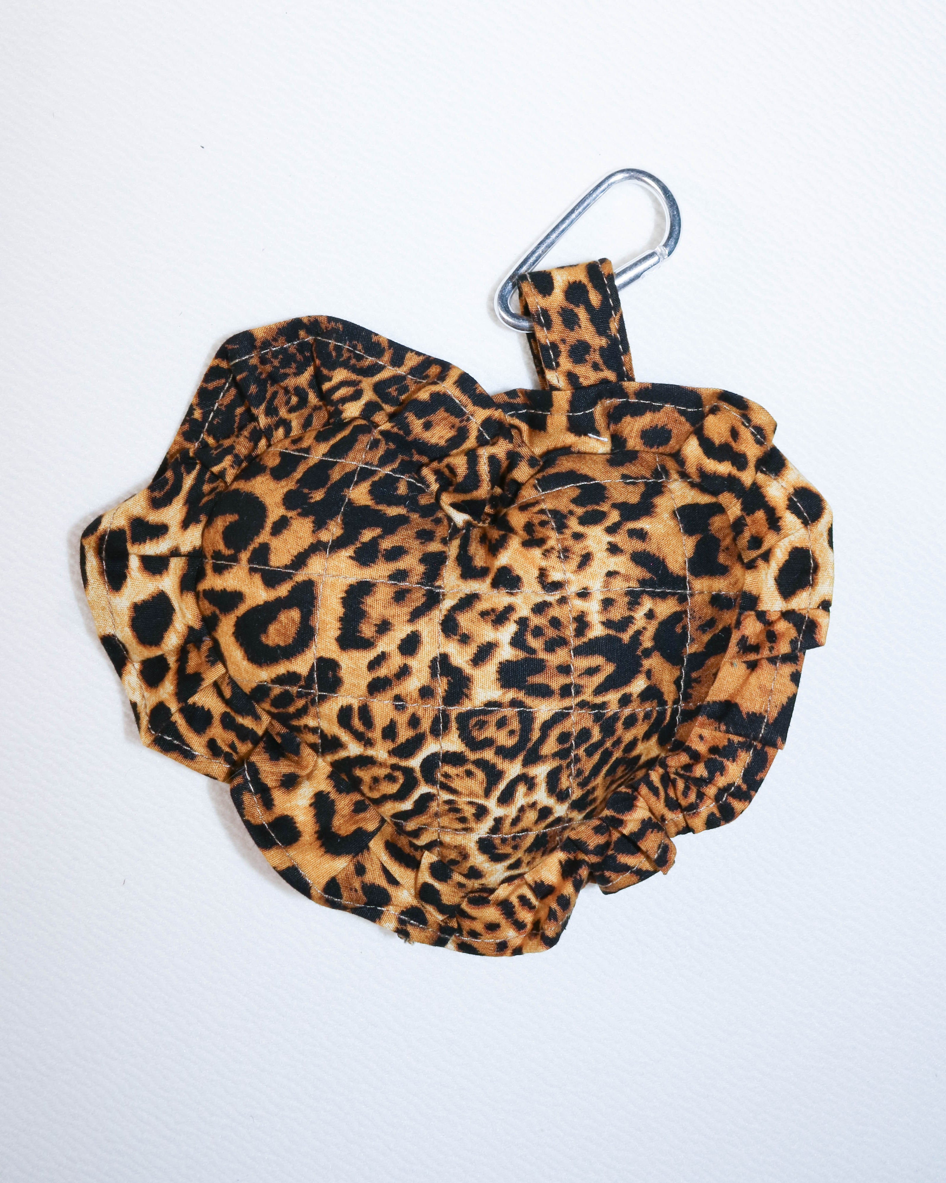 This classic leopard print cotton heart-shaped bag charm lets you bring a touch of wildness with you wherever you go.