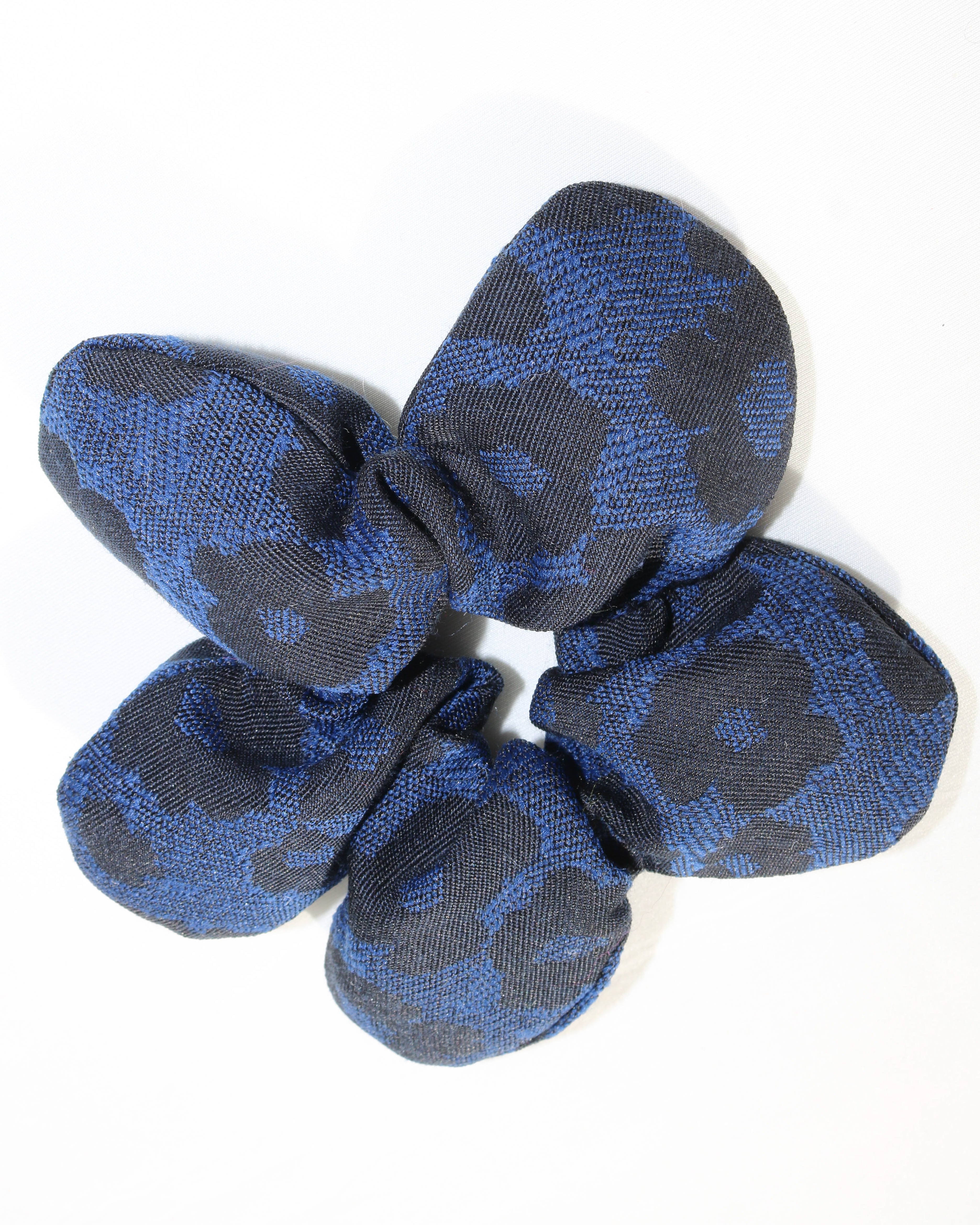 A playful hair accessory in a dark blue vintage floral fabric which feels light and comfortable when worn. Lightly stuffed to hold its flower shape, with strong elastic for durability.
