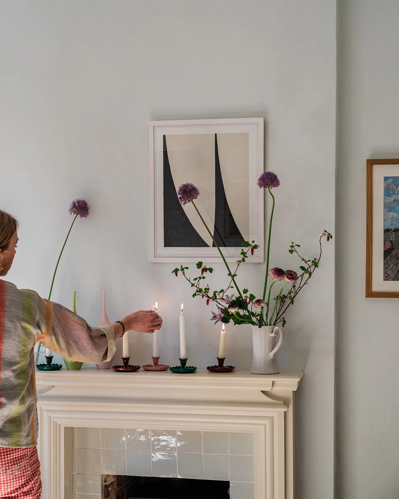 They're the perfect height for the table, not too high so you can still your friend and pretty enough for the fireplace mantel. The cute scalloped edge also gives you the perfect place to pop the match and catches any potential dripping wax!