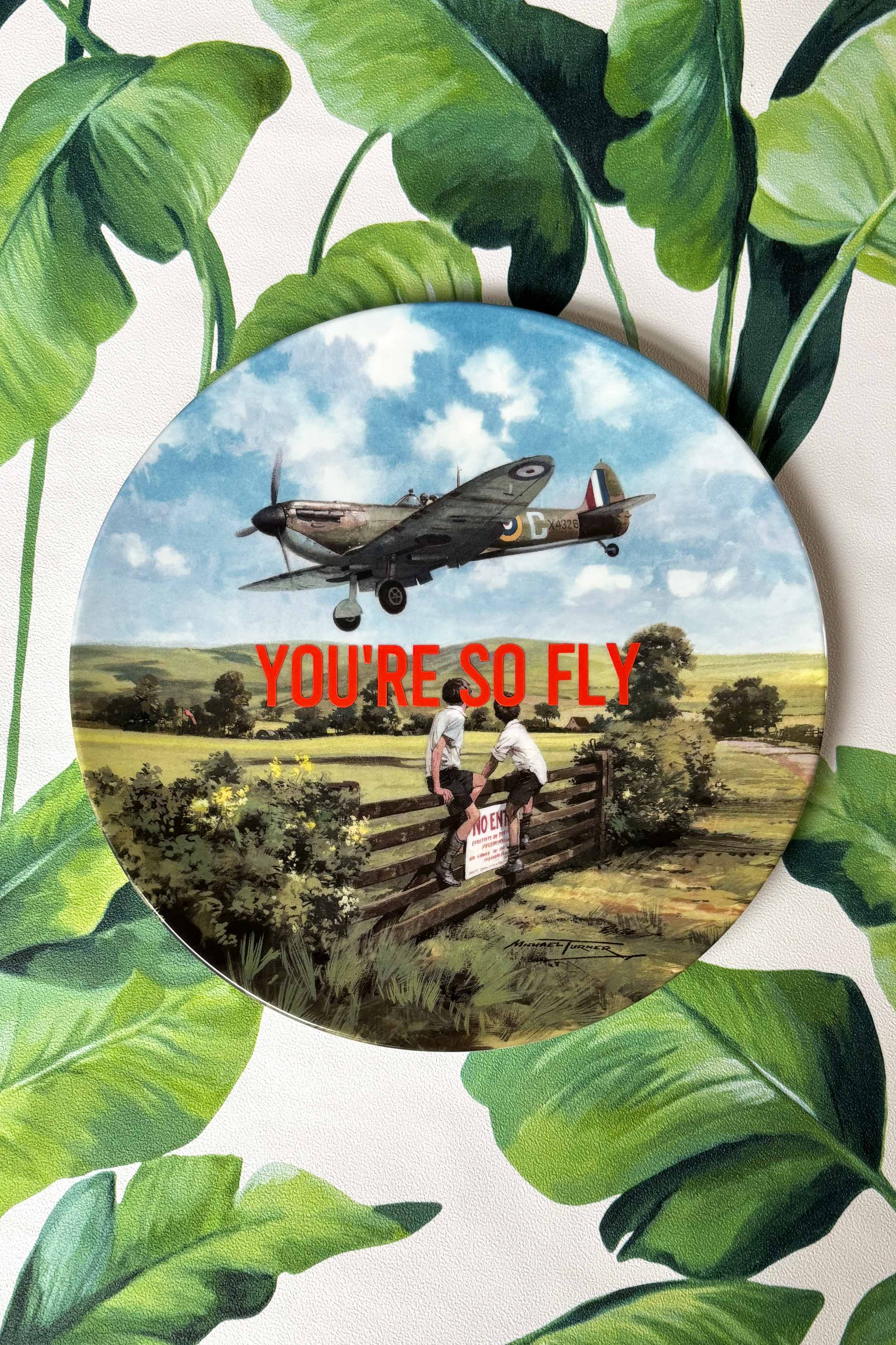 This preloved Royal Doulton limited edition plate has been given a new lease of life by adding a fun plane related pun in a deep Orange vinyl. The plate size is approx. 20.5cm x 20.5cm and is decorative use only not for food use. It can be hung on the wall in a No.2 sized hanger or placed in a large plate stand which is also available to purchase.