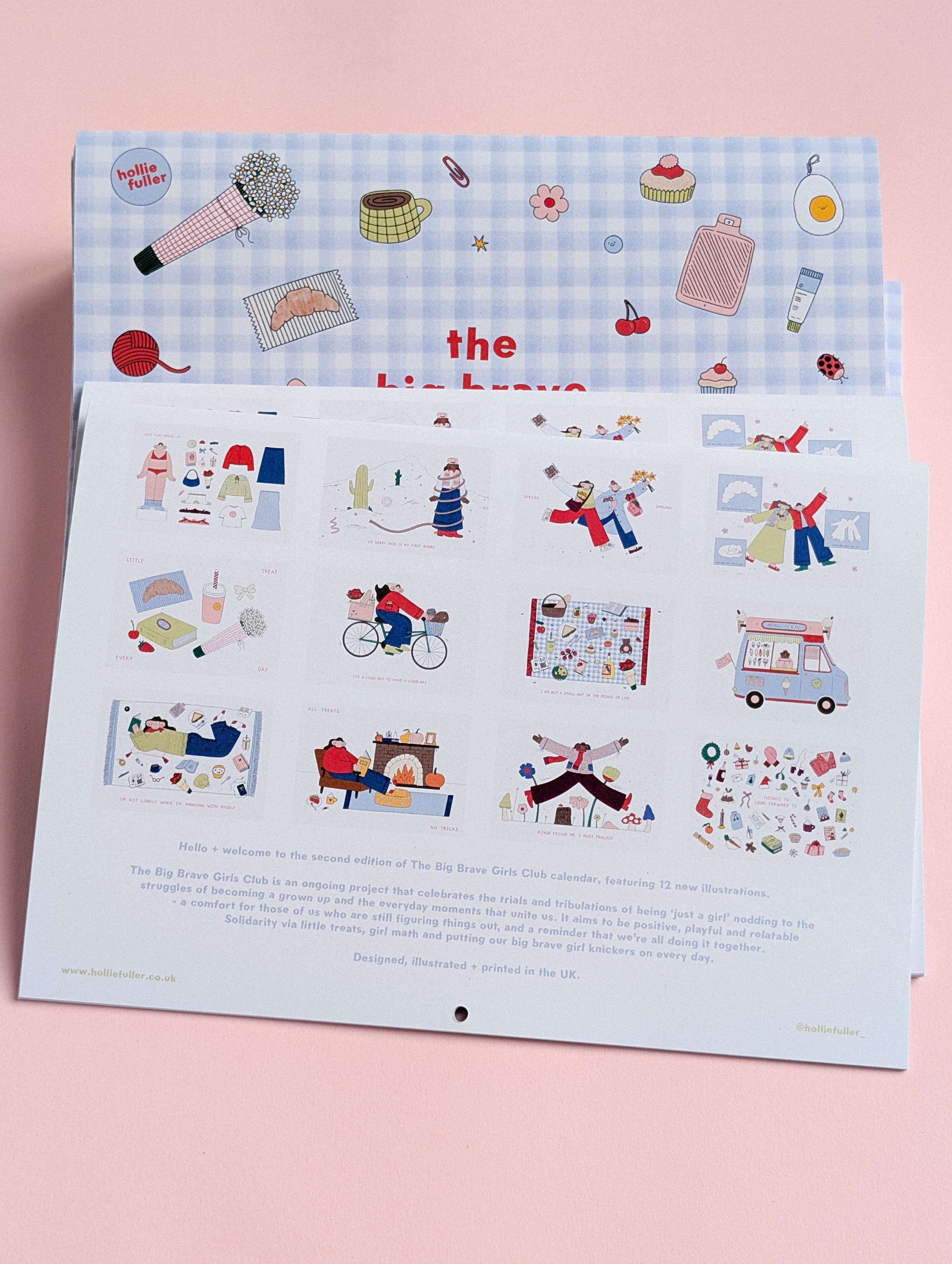 The Big Brave Girls Club A4 calendar. Illustrated + printed in the UK onto FSC certified, recycled paper stock.