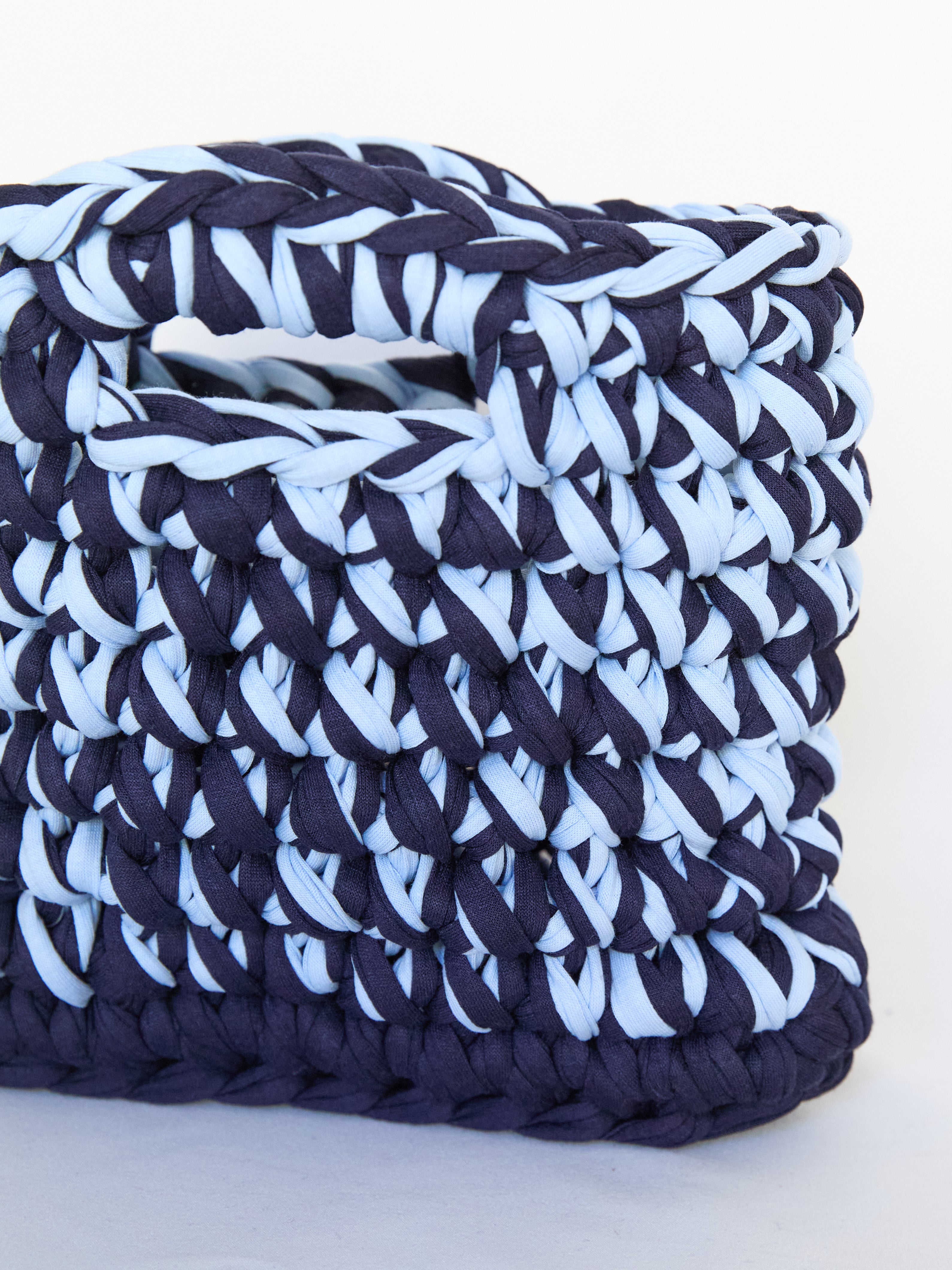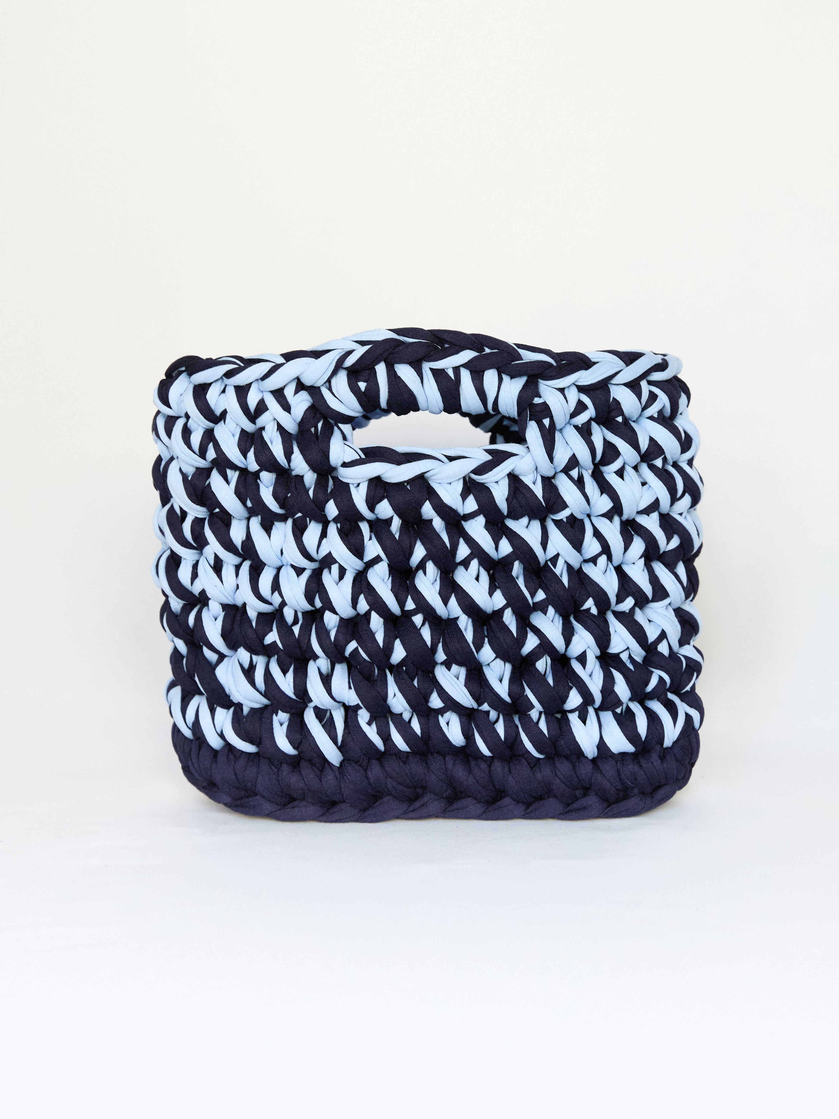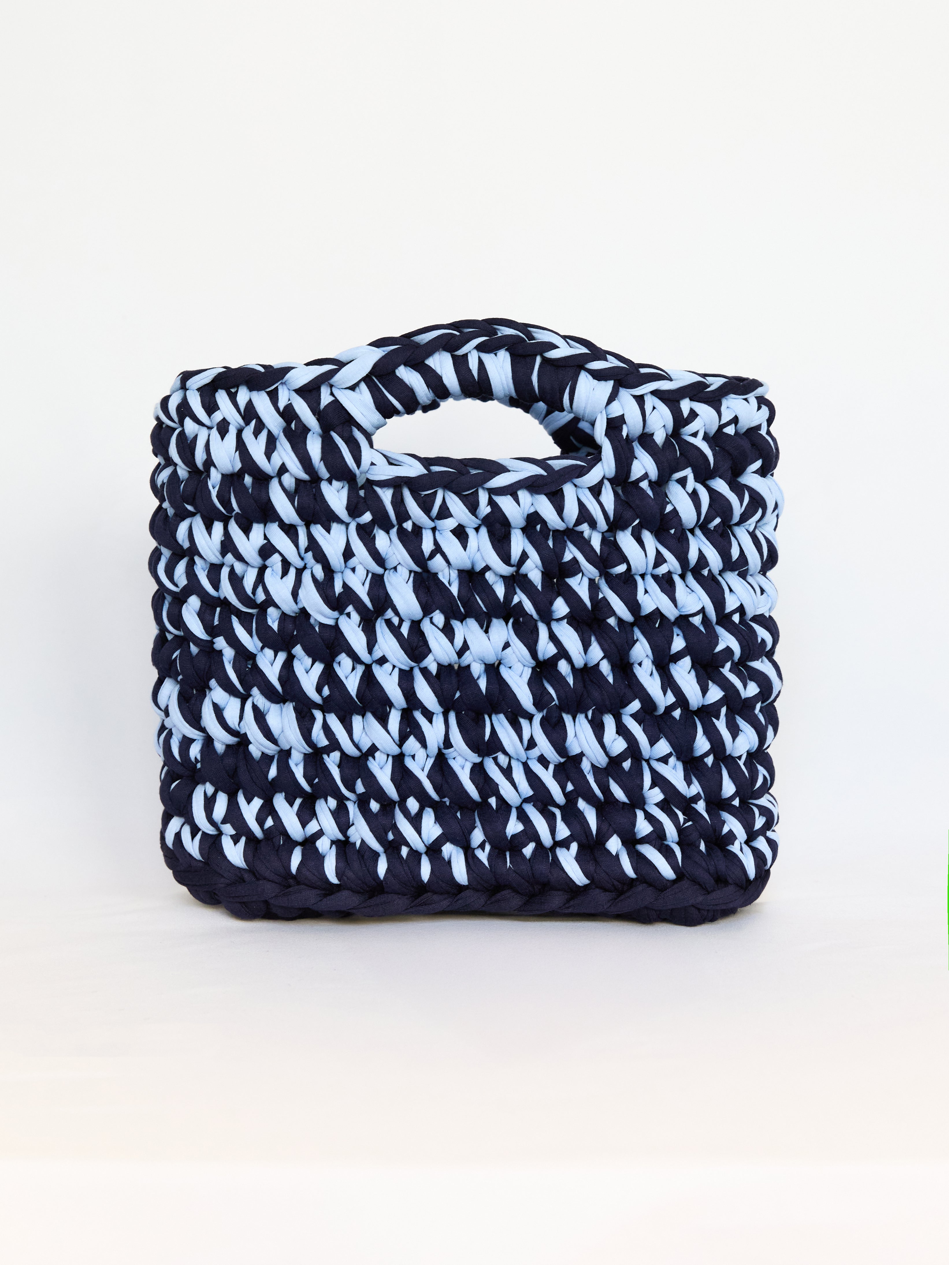 The Feeling Baby Blue 'Mini' is handmade from recycled t-shirt yarn, giving it a one of a kind texture and feel. Sizes may vary a little, but they’re soft, stretchy, and ready to hold all your must-haves. 17cm x 20cm