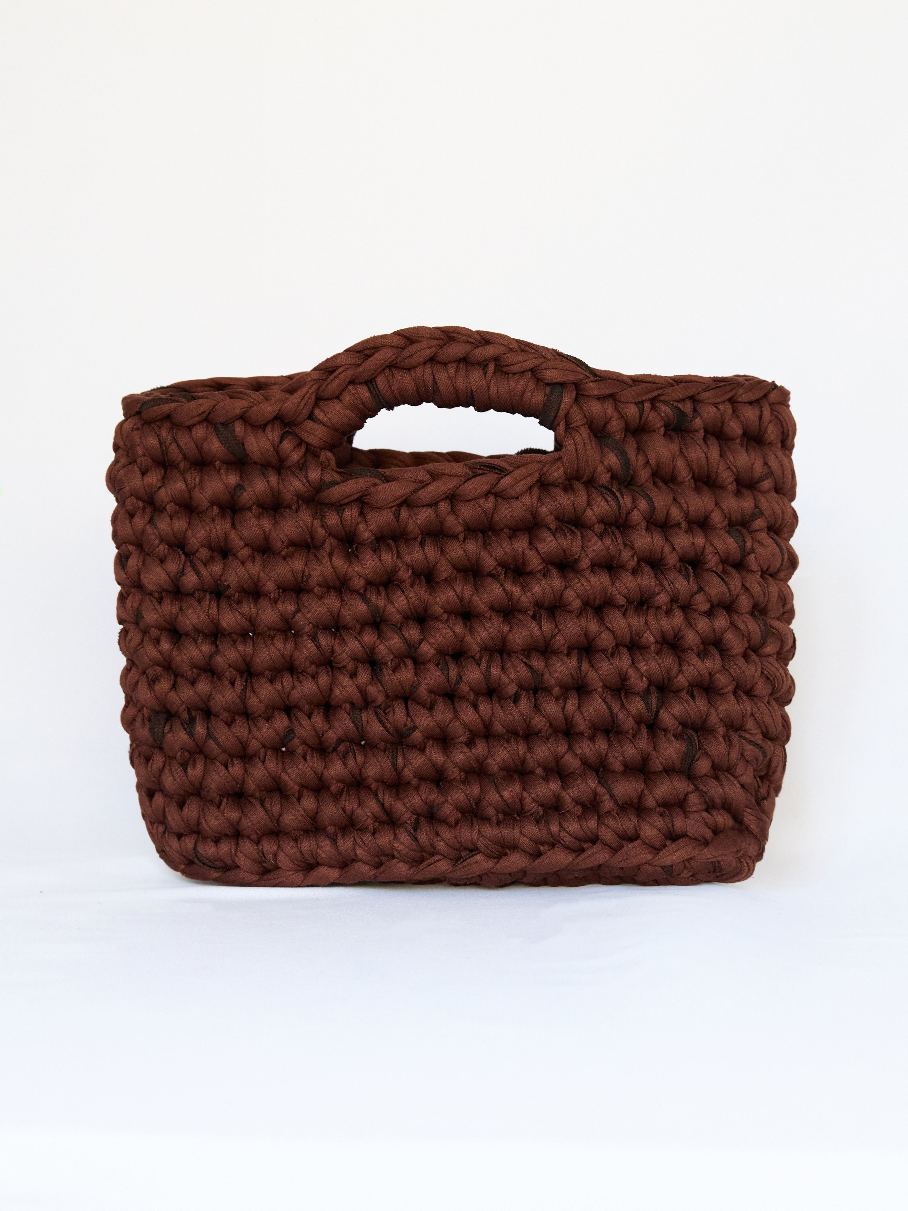 The Hot Mess Mocha is handmade from recycled t-shirt yarn, giving it a one of a kind texture and feel. Sizes may vary a little, but they’re soft, stretchy, and ready to hold all your must-haves. 22cm x 27cm