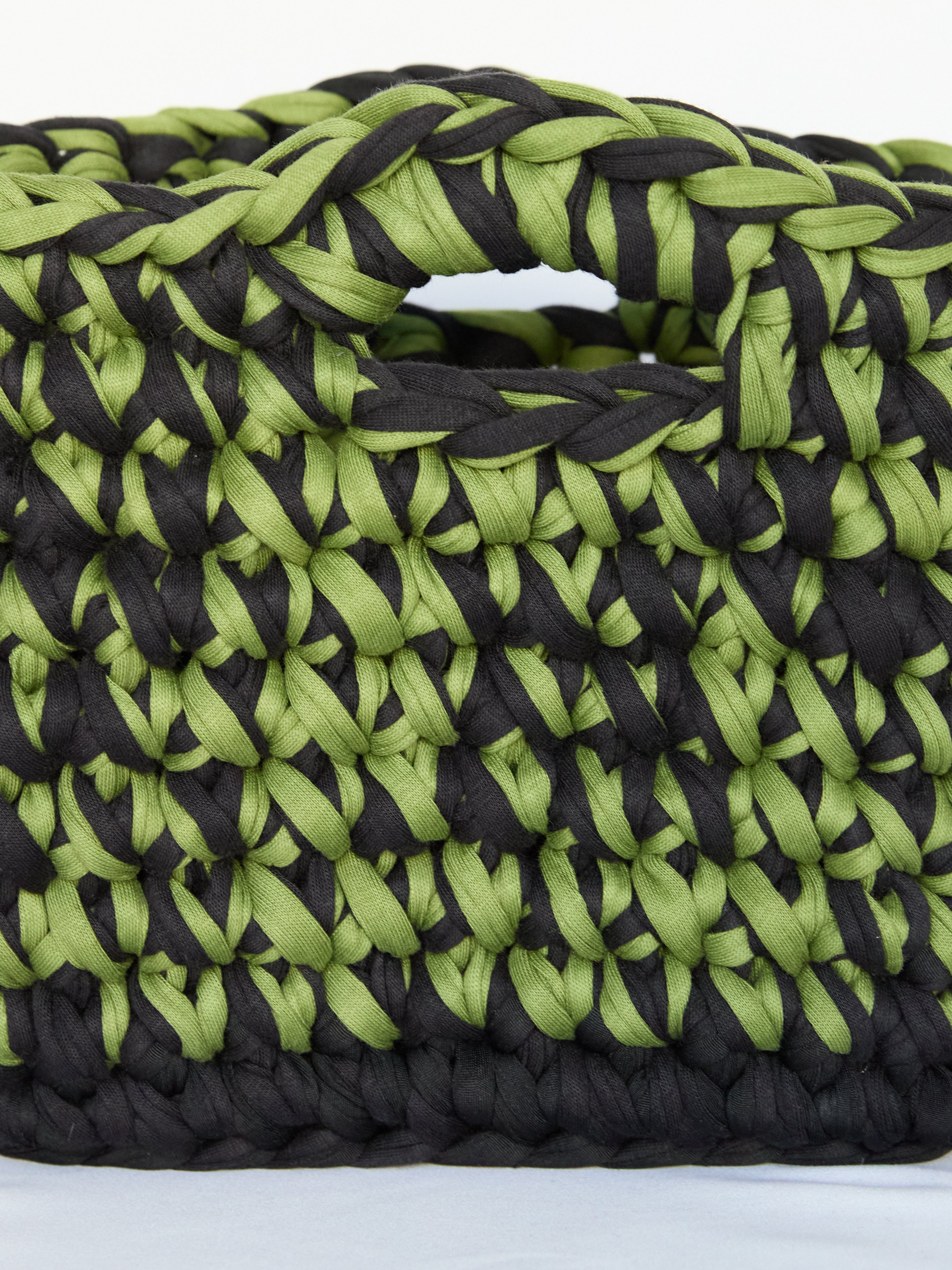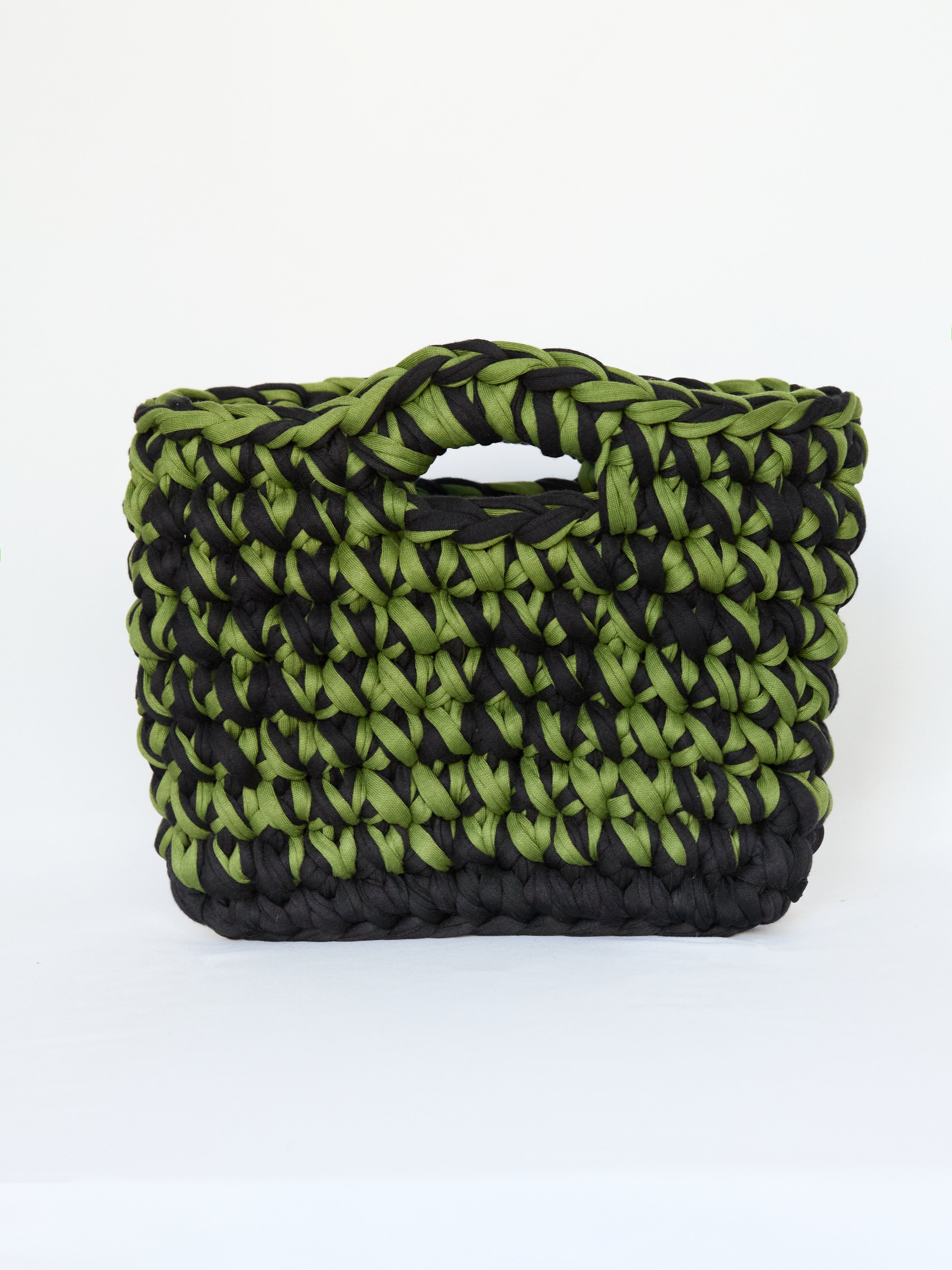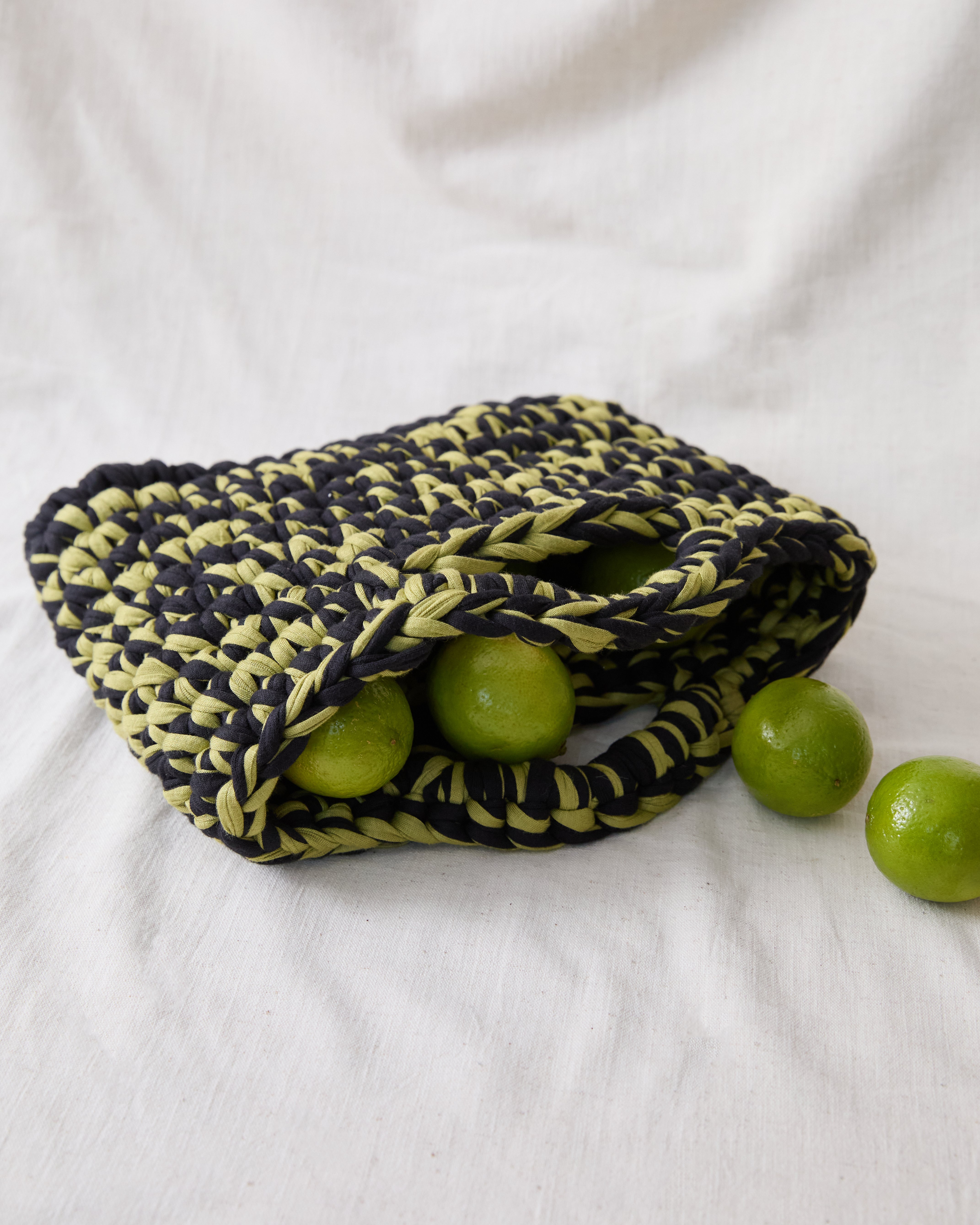 The Midnight Brat-ish 'Mini' is handmade from recycled t-shirt yarn, giving it a one of a kind texture and feel. Sizes may vary a little, but they’re soft, stretchy, and ready to hold all your must-haves. TBCcm x TBCcm