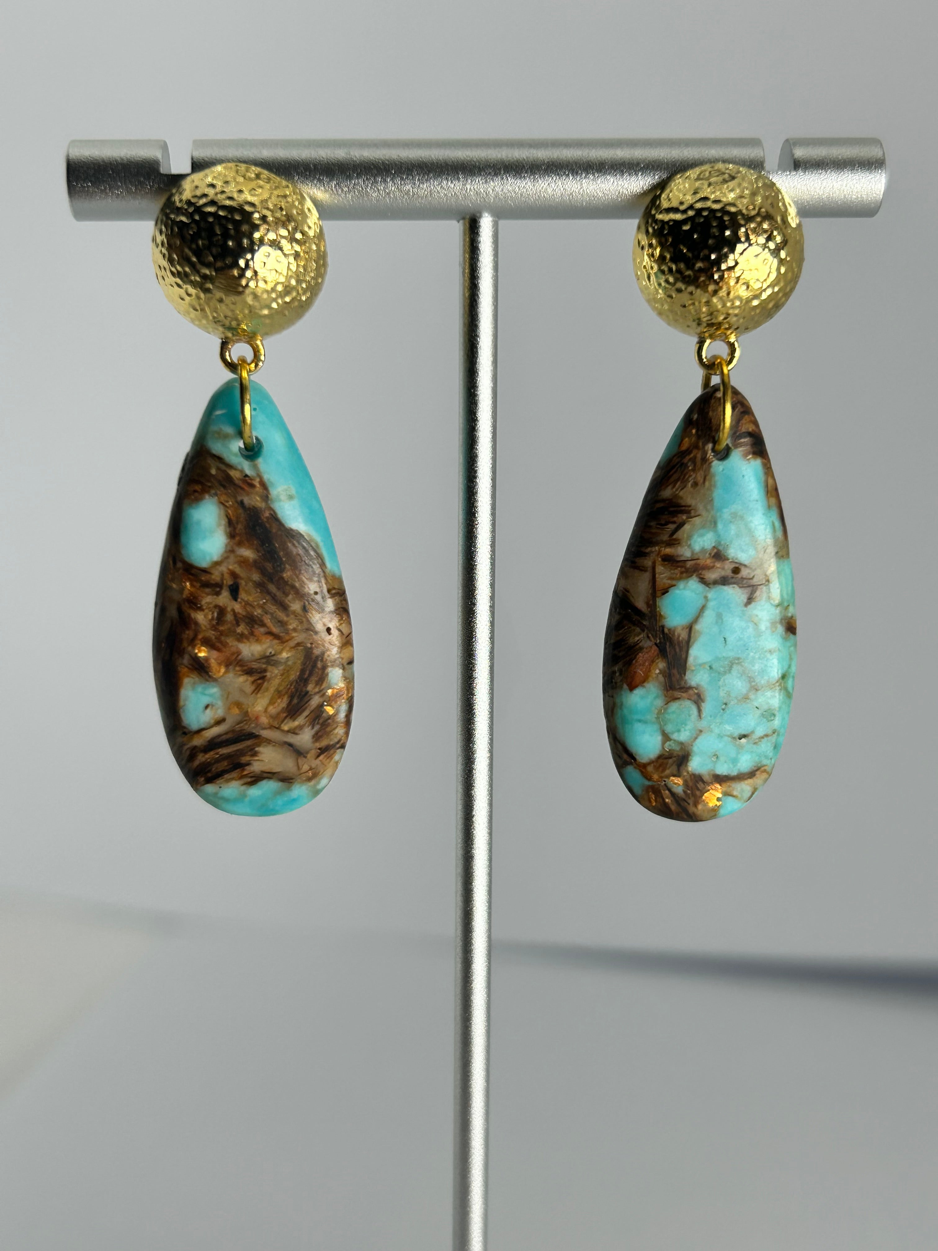 Bronzite Jasper on Gold Plated stainless steel pierced earrings.