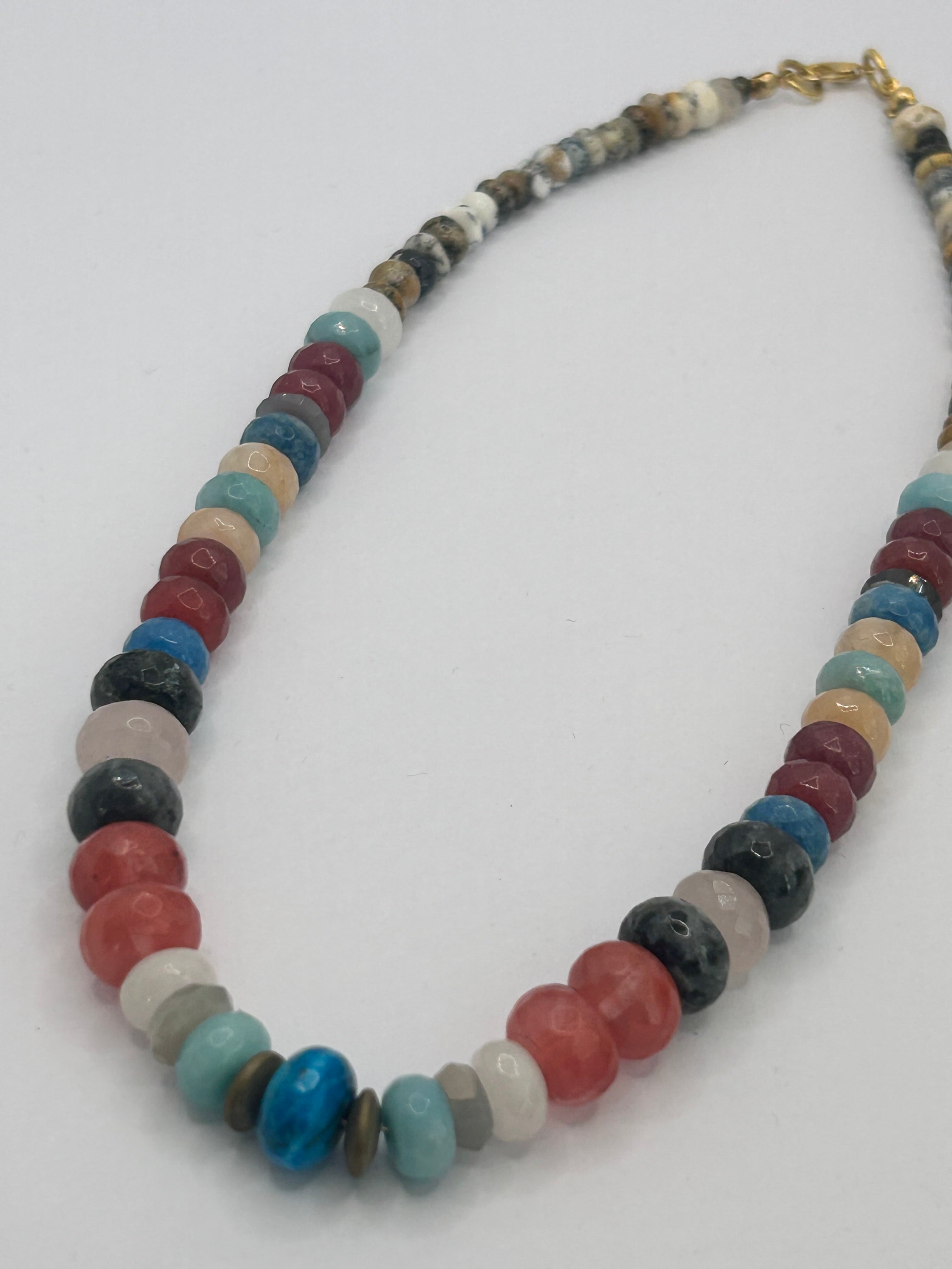 Dendrite Opal, Agate & Labradorite on Gold Plate Plated Necklace - lovely colourful necklace.