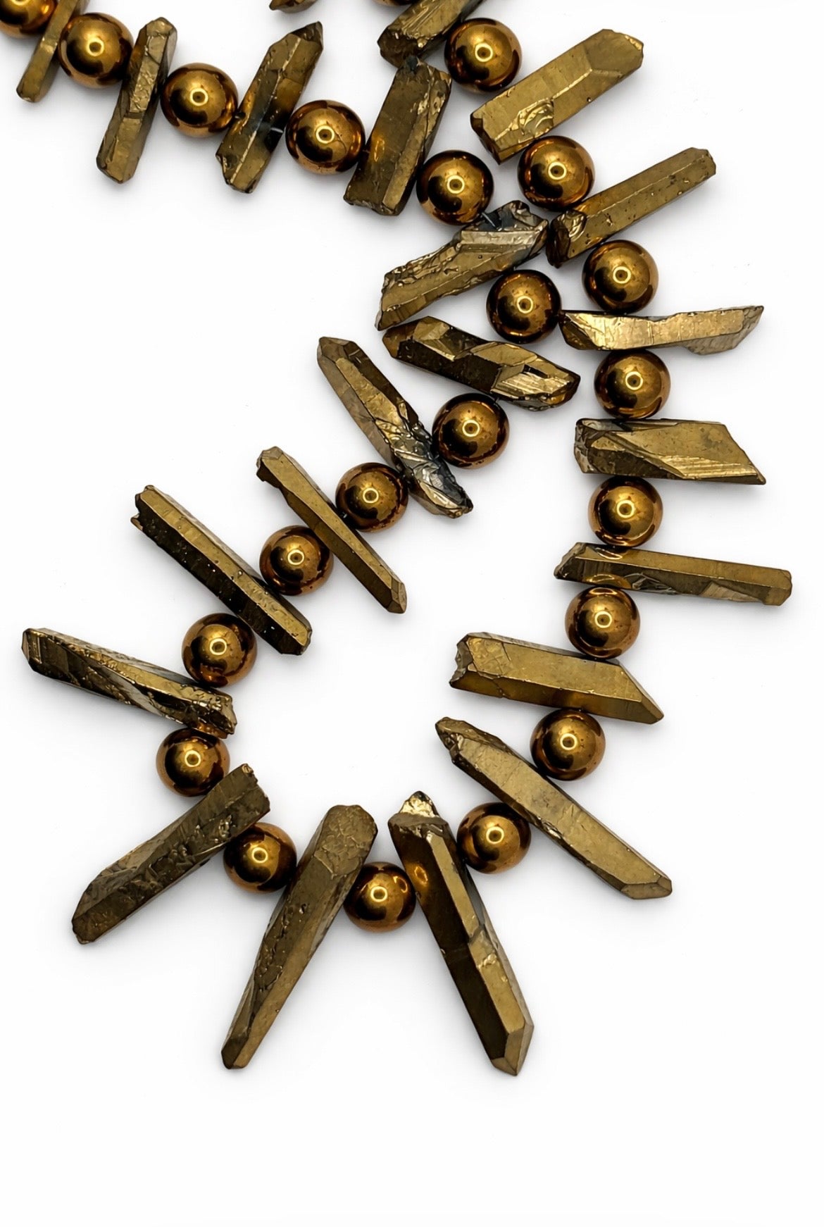 Statement Gold Rock Crystal & Hematite Spike Necklace.
