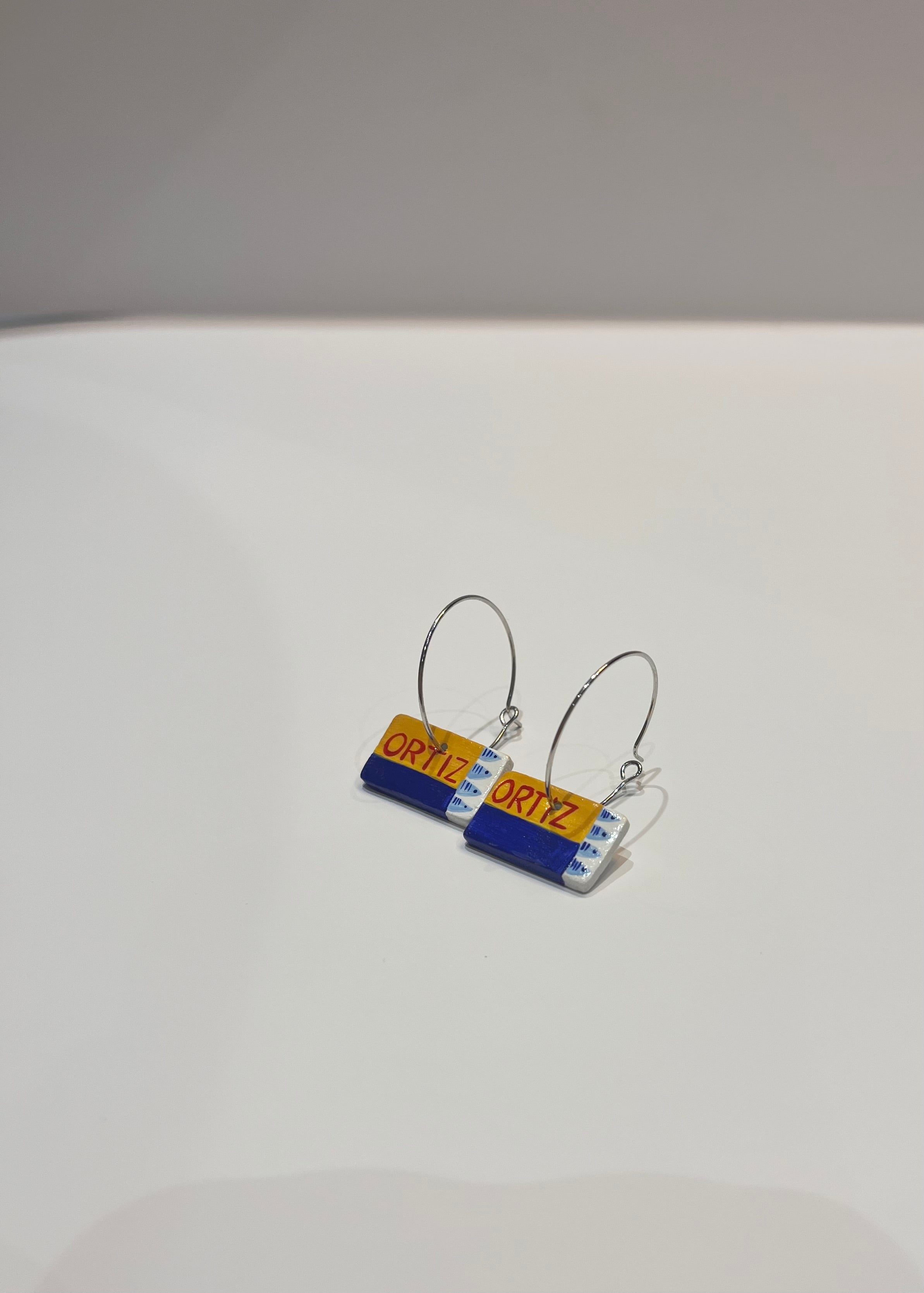 Miniature clay charms on thin hoop earrings, handmade from start to finish from my studio in Salford. The charms are painted and varnished on all sides, including on the backs. This means that they are fully protected from any weather damage, but please try not to wear them in the shower/bath/sea swimming! The earring hoops are stainless steel.
