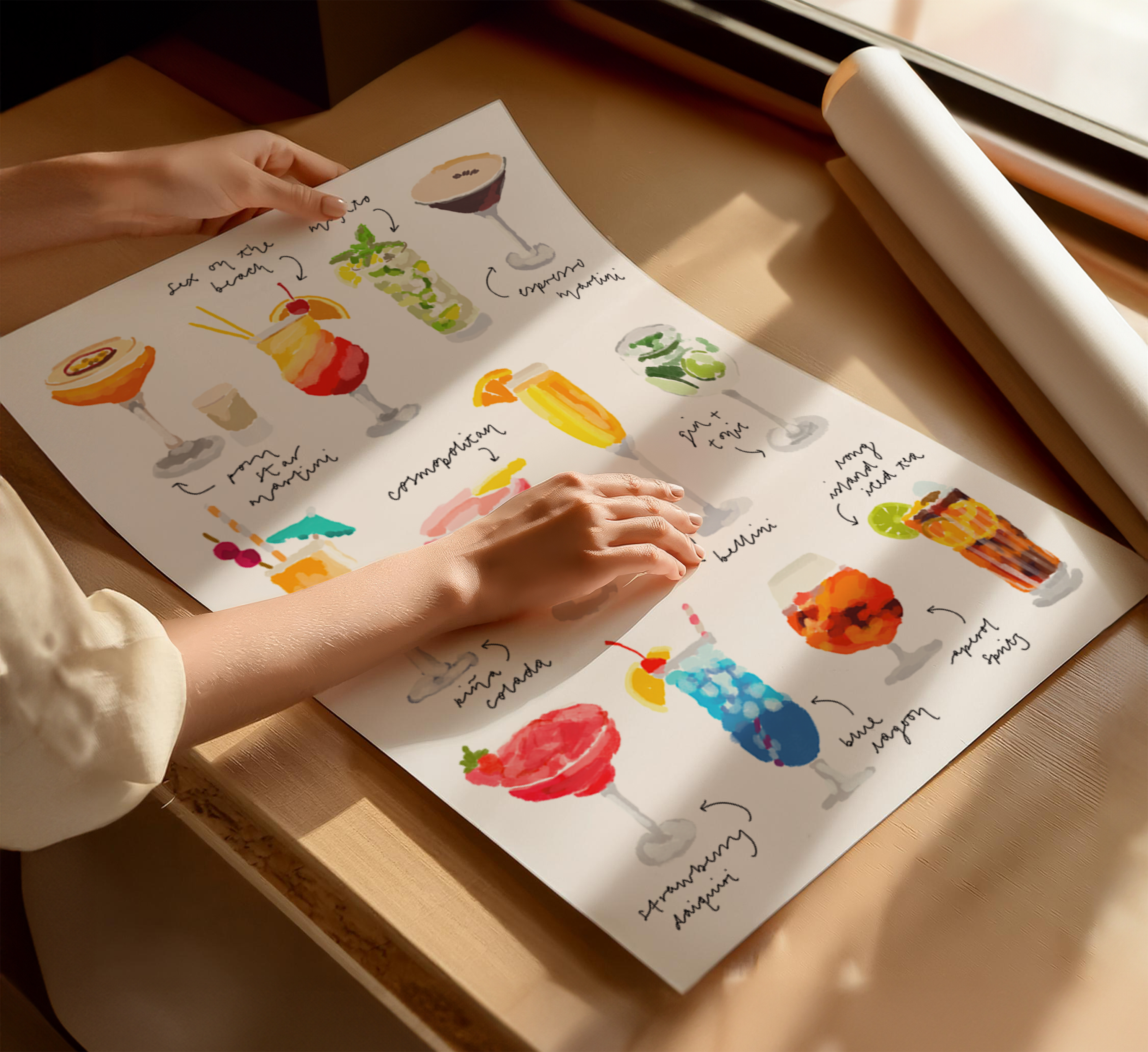 This design is hand drawn by Natalie and made into a print perfect for the kitchen or bar cart. Printed on premium archival matt 230gsm paper.