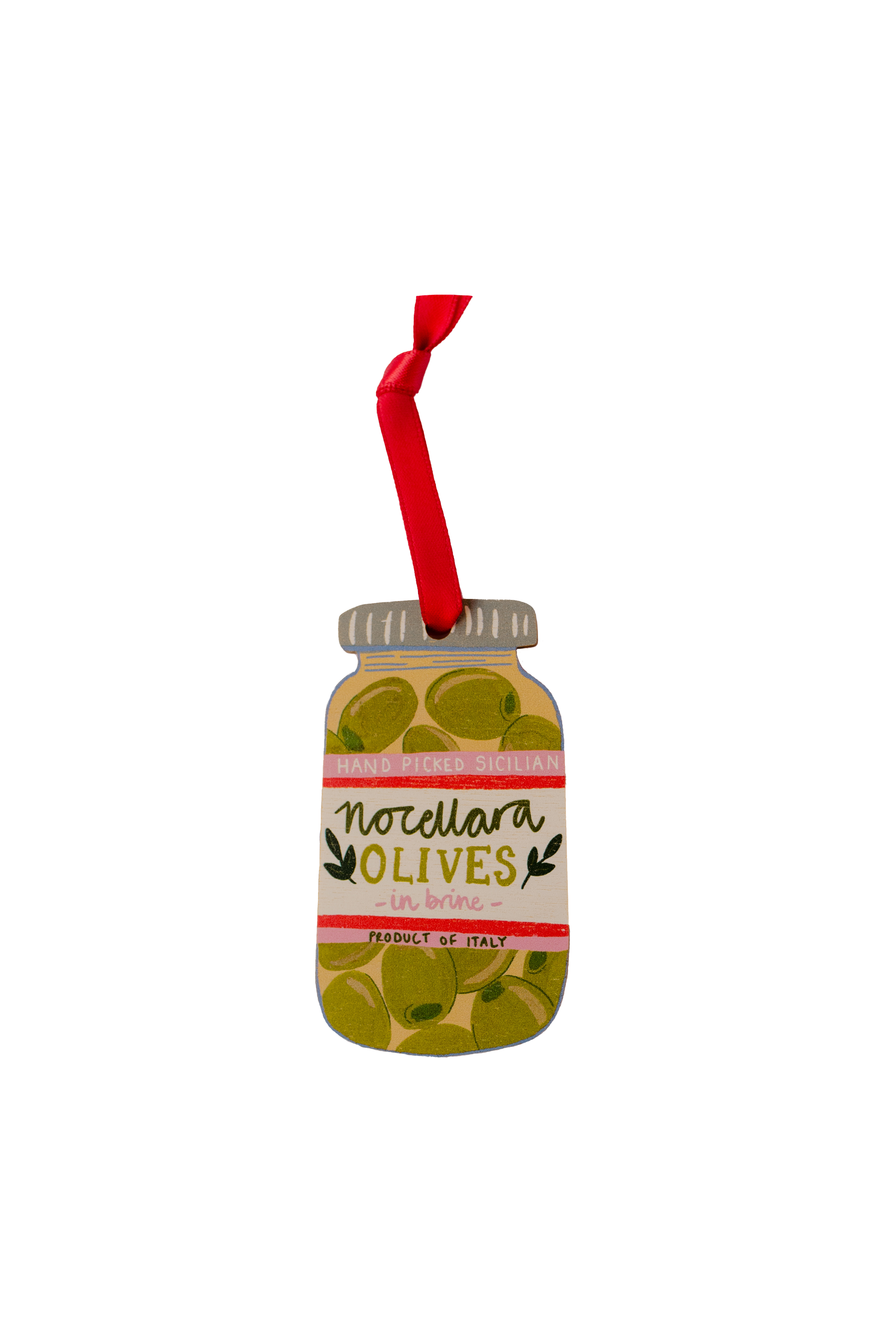 Nocellara Olives Decoration. A colourful, illustrated decoration, perfect for olive enthusiasts, foodies and fans of Italy.