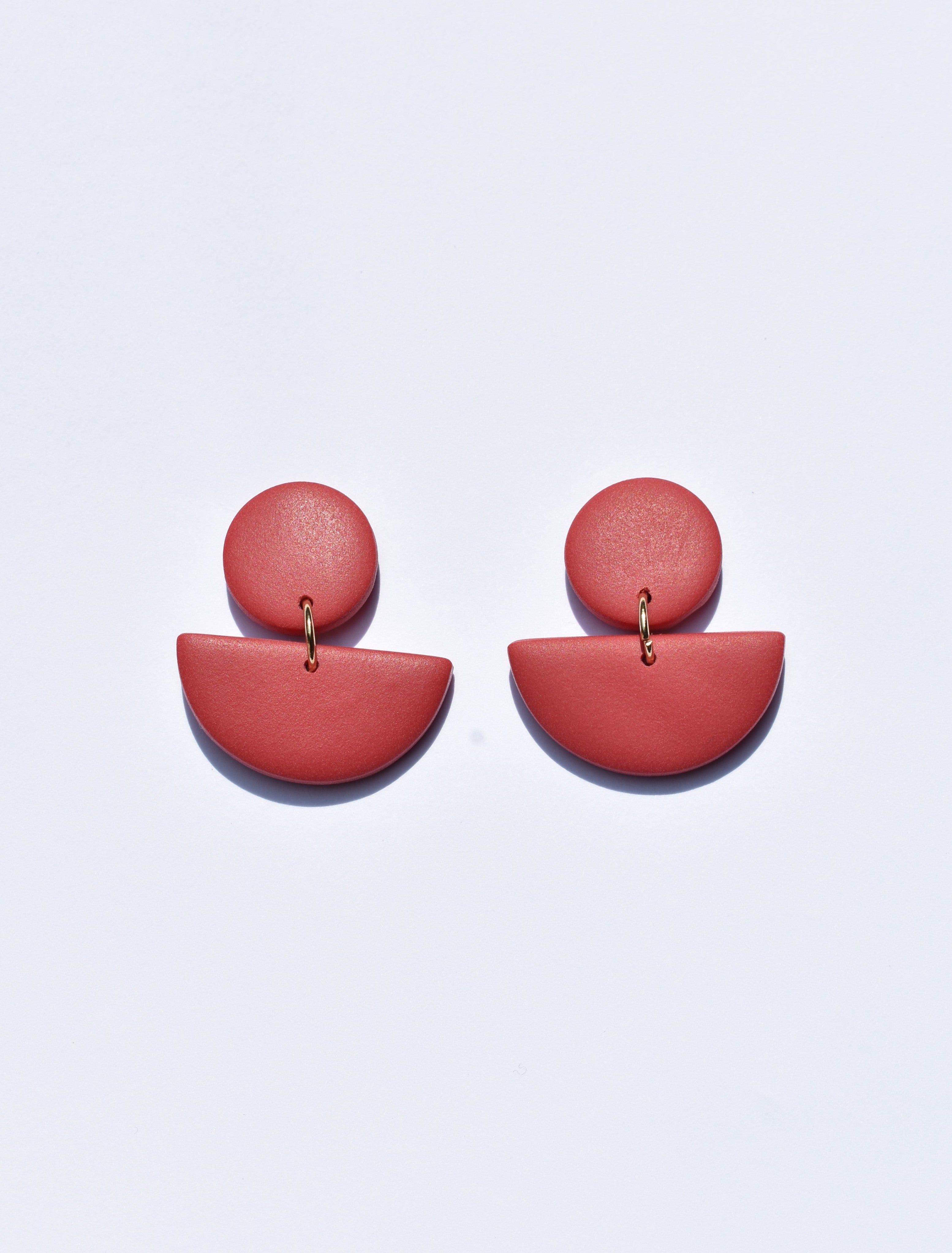Red half moon shaped earrings. With nickel free stainless steel posts with