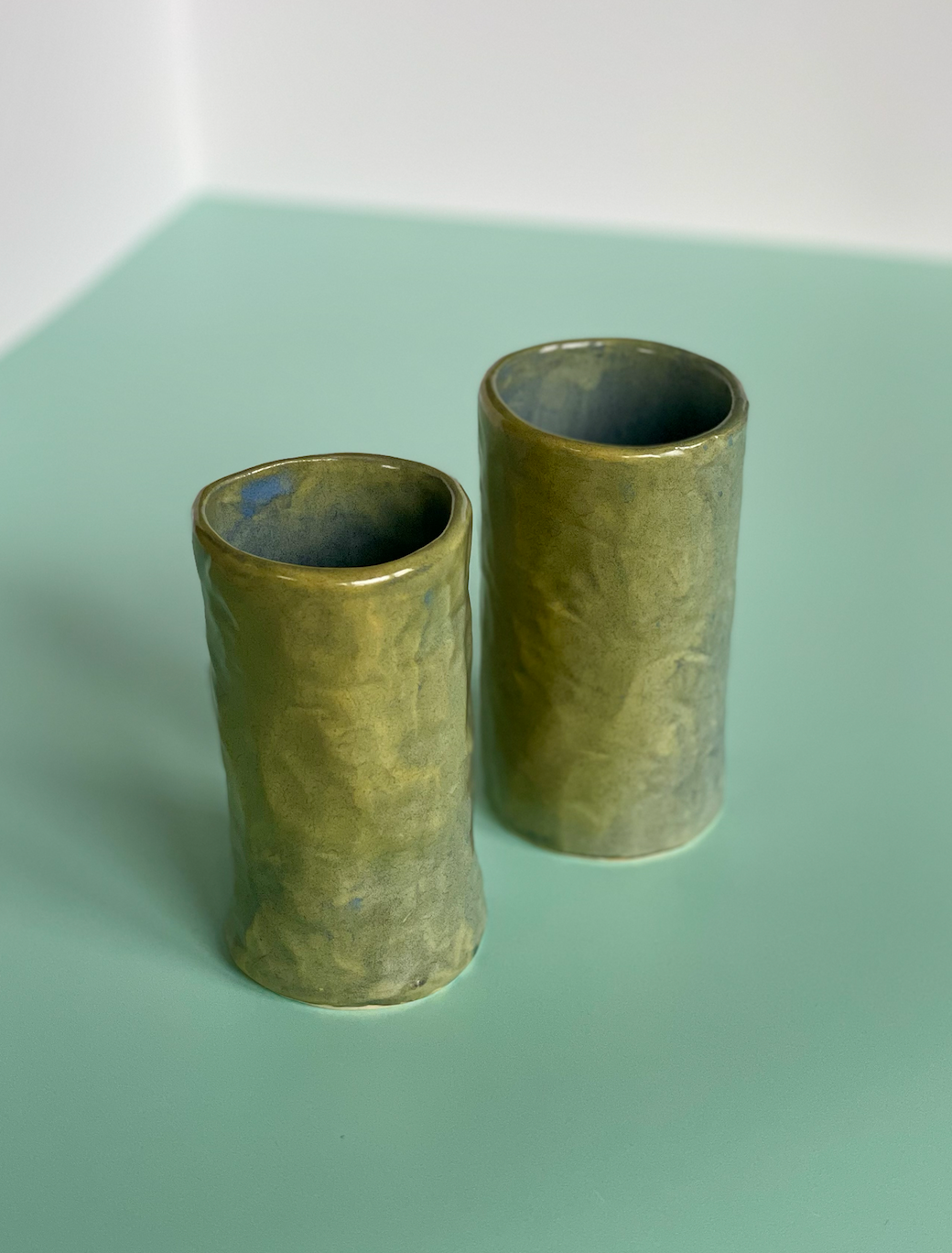This bud vase is handmade using a slab building technique in white stoneware clay. Texture is carved into the clay before firing, finished with a two-tonal matte glaze that gives it a crumpled paper like finish. Dimensions: H11cm x W6cm