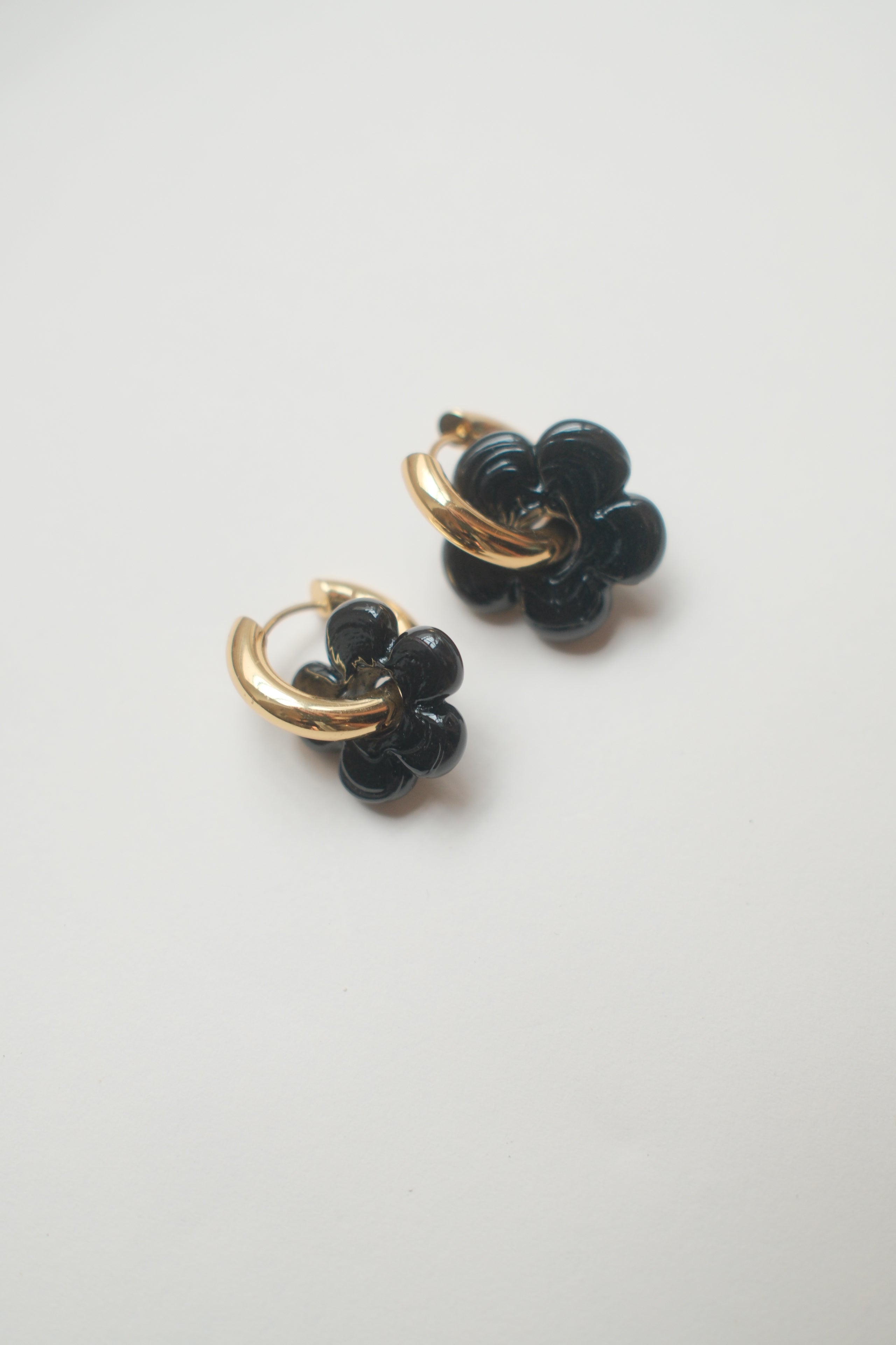 Handmade in Turkey, these glass flowers sit around a 2cm chunky hoop and make the perfect everyday-wear statement earring. Please note, each pair may vary slightly due to the handmade nature of the materials. Approx. 3cm in length.