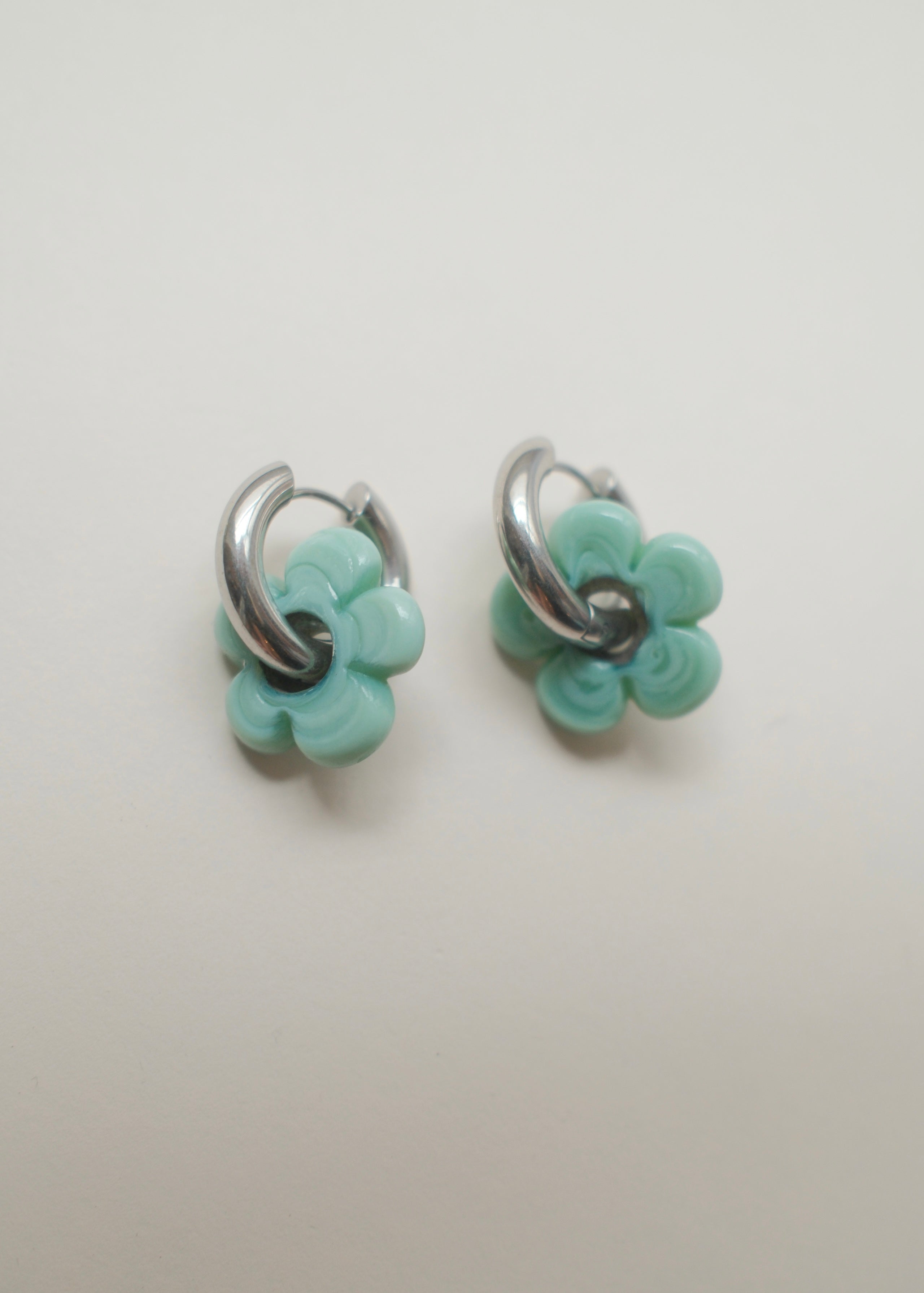 Handmade in Turkey, these glass flowers sit around a 2cm chunky hoop and make the perfect everyday-wear statement earring. Please note, each pair may vary slightly due to the handmade nature of the materials. Approx. 3cm in length.