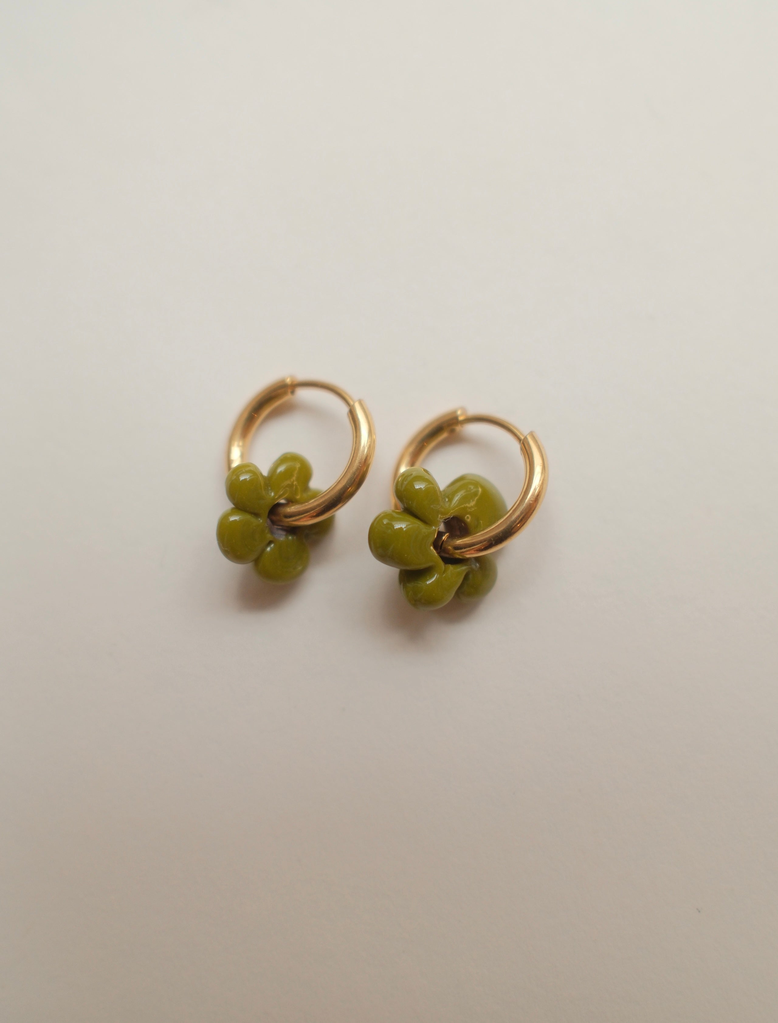 Handmade in Turkey, these glass flowers sit around a 1.4cm hoop and make the perfect subtle but colourful everyday-wear earring. Please note, each pair may vary slightly due to the handmade nature of the materials. Approx. 2cm in length.